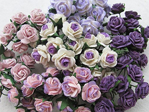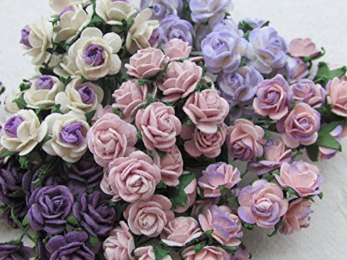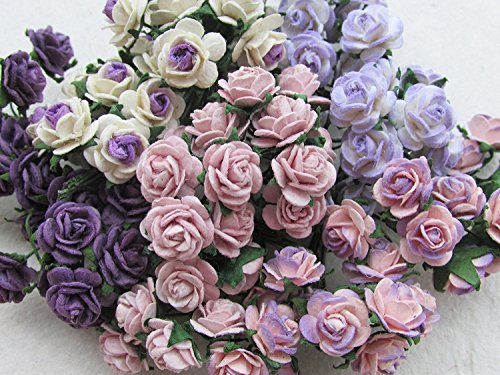 100 pcs mini Rose mixed Purple color Mulberry Paper Flower 10 mm scrapbooking wedding doll house supplies card, Thailand.