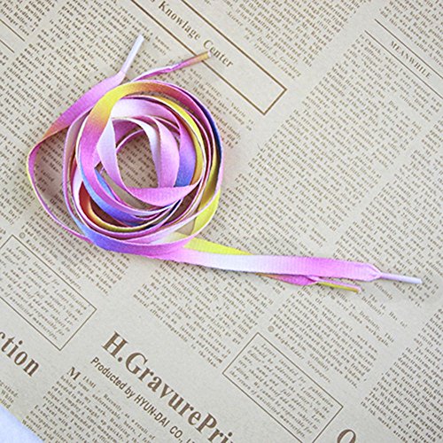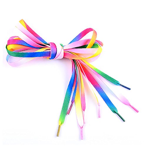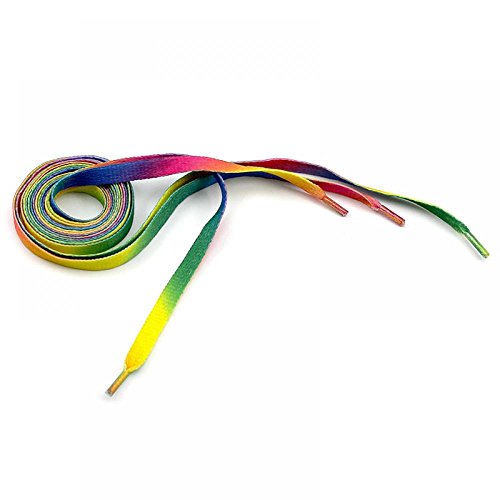 Product Description Perfect for casual shoes, sneakers, athletic shoes, sports shoes etc. Cool rainbow multi-colorful design. Bring life to your shoes. Material: Polyester Color: Rainbow color, shown ih the picture Length: Approx 110cm/42inch Width: Approx 0.8cm Note: Shoes not included Package Included: 5 Pairs Shoelace Feedback: We greatly appreciate your Positive feedback. Please do not leave negative feedback or submit A-Z Claim without any contact. If you haven't received item in time, please contact us and we will solve it for you