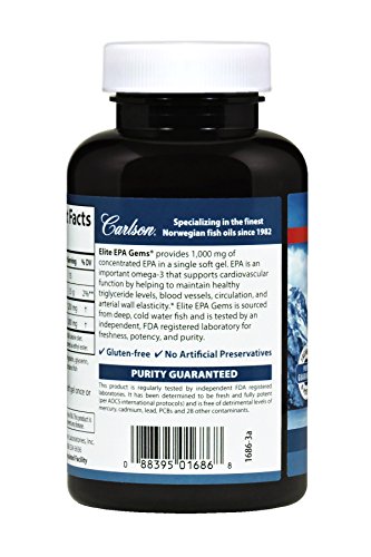 EPA and DHA are two beneficial omega-3s found in marine oils. While DHA is most important during pregnancy and early child development, EPA is equally critical as we age and is an important part of a healthy adult diet. For this reason, we created Elite EPA Gems, a highly concentrated fish oil supplement boasting 1,000 mg of EPA per soft gel. EPA promotes cardiovascular system, immune system, joint, and mood health.Feature