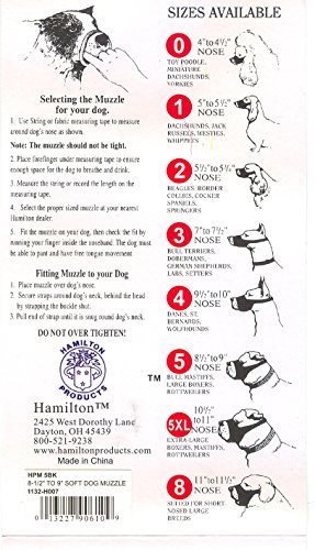 Studio : Hamilton Pet Products Publisher : Hamilton Pet Products Binding : Misc. Product Description HPM 1BK Size: 5" - 5.5" Features: -Dog muzzle.-Material: Nylon and plastic.-Strong, soft and flexible allows drinking, panting and vomiting.-Decreases chances of biting, chewing, barking.-Difficult for dog to dislodge.-Use only with direct supervision.-Quick fit. Dimensions: -4' - 4.5' length.-5' - 5.5' length.-5.5' - 5.75' length.-7' - 7.5' length.-8.5' - 9' length.-9.5' - 10' length. 0