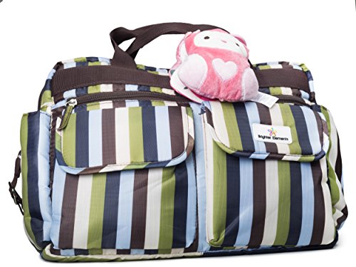 [Description] THE ULTIMATE ``MARY POPPIN``S DIAPER BAG`` FOR MOMS! - This new diaper bag by Brighter Elements offers a dual level of trendy fashion_ as well as practical usability that make it above and beyond other diaper bags. Beautiful_ multi-colored stripes along with a smooth nylon waterproof material really makes it stand out. Many pockets of different sizes offer many possibilities for mobile moms & dads. This baby bag provides the best of both worlds at a reasonable price for the high quality offered. PREMIUM QUALITY + HIGH PERFORMANCE= A HAPPY MOM!- You may be thinking what separates this diaper bag from other brands that are made of cheap quality and initially seem fine_ but soon begin to fail you Well_ it``s made of top quality & premium nylon material that is meant to last a long time. Its aim from the seller_ to the manufacturer_ down to the factory workers is to be the best and last diaper bag brand you ever have to buy! Our pride is in providing the best customer service every day! YOU``LL NEVER WANT TO LEAVE HOME WITHOUT IT - ``Good things do not come easy`` is what they say_ and this diaper bag is no different_ except in its superb quality & design. An insulated baby bottle bag which can fit many sized bottles is included along with stainless steel zippers and buckles for grit and durability. Also_ the front & side pockets have enough space to keep a plethora of baby goods such as toys_ clothes_ bibs_ towels_ swaddles_ lotion and more! This is a true quality purchase! A SUPER MOM DIAPER BAG THAT``S BOTH STYLISH & FUNCTIONAL! - Brighter Elements`` diaper bag includes a matching diaper changing pad for quick and easy diaper change wherever you may be. Also included are sturdy stroller straps that instantly turn the diaper bag into a stroller organizer_ which moms and dads can easily access their boy or girl``s accessories on-the-go. There is also great depth in the main compartment while the bag itself is lightweight_ making this diaper bag a designing genius. ENJOY OUR ``COMFORTABLE MOM GUARANTEE - We at Brighter Elements know the quality and precision that goes into making our product the top of its class. That``s why there is ABSOLUTELY NO RISK with our 100% MONEY BACK GUARANTEE! If for any reason you aren``t completely satisfied with your purchase_ immediately drop us a note_ and we``ll give you a COMPLETE_ hassle-free REFUND. Customer service and satisfaction are key to our business and we hope to serve you with excellence. That``s our promise!