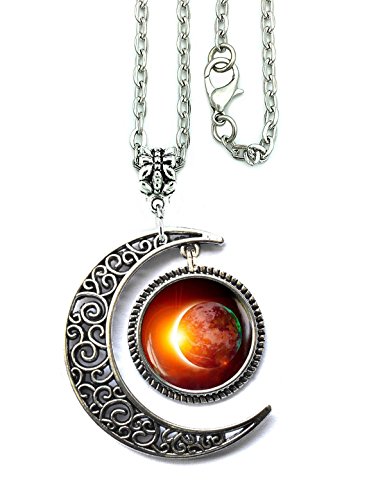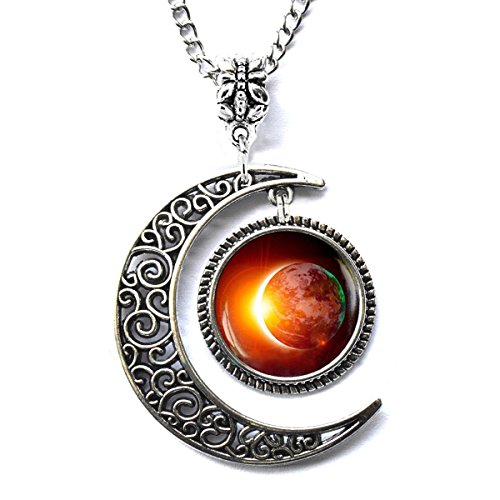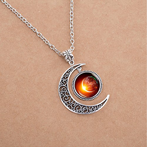L.Beautiful Solar Eclipse Charm Crescent Moon Pendant Necklace Space Galaxy Friendship Jewelry with Gift Box