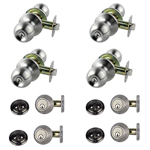 -. Brand : NUSET -. Color : Satin Stainless Steel -. EAN : 0715590406841 -. Feature : 4 NuSet Entry Door Knobs and 4 Single Cylinder Dead Bolts / Dead Bolt Has Thumb Turn On The Inside To Lock and Unlock / All locks keyed alike meaning one key opens all locks!!! / Satin Stainless Steel / Grade 3 Equivalent -. Label : NUSET -. Manufacturer : NUSET -. Model : 4068-4 -. MPN : 4 x FE32D & 70032D+4397-1 -. PartNumber : 4 x FE32D & 70032D+4397-1 -. ProductGroup : Home Improvement -. ProductTypeName : HARDWARE -. Publisher : NUSET -. Studio : NUSET -. Title : 4 Sets of Keyed Fremont(32D) Door Knob and Single Cylinder Deadbolt, Satin Stainless Steel -. UPC : 715590406841