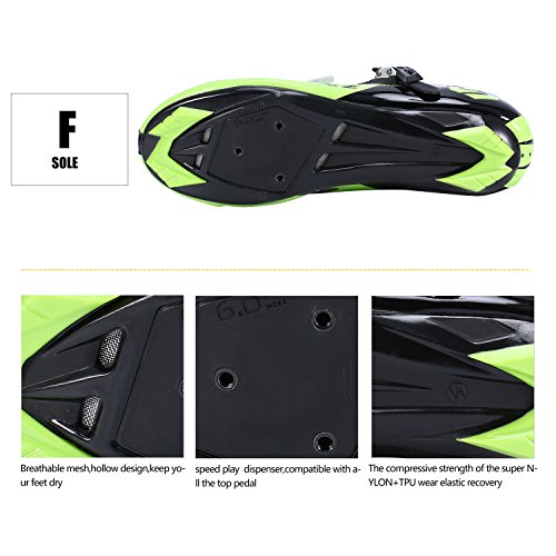 Description: 1.They are very lightweight, very comfortable, with good lateral support. The Velcro straps work well, quick to put on and allowing fine adjustments at 3 points. The heel plate provides a level walking structure, though it is slippery on hard surfaces. Cleat installation was easy -printed calibration marks help alignment. 2.?Clean, modern style and a versatile, supportive form make the Treble II a popular choice for everything from spin classes to centuries. The upper is made of supple synthetic and adjusts quickly and precisely with three wide straps, while an Aegis anti-microbial EVA footbed keeps you comfortable on longer rides. The stiff, injected nylon outsole is outfitted with the new Universal Cleat Mount system that accommodates three-boLT systems. Size Chart: US 10 , EU 43, Shoe length: 10.63", Shoe Forefoot Width: 90.39mm US 11 , EU 44, Shoe length: 10.83", Shoe Forefoot Width: 91.98mm US 12 , EU 45, Shoe length: 11.22", Shoe Forefoot Width: 93.57mm Service: We strive to put our hundred percent to resolve your issues and try our best to achieve your satisfaction! 0 |