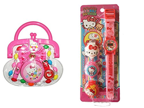 Hello Kitty purse set includes: Purse, necklace, hair ribbon, mirror case, lipstick & watch