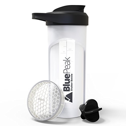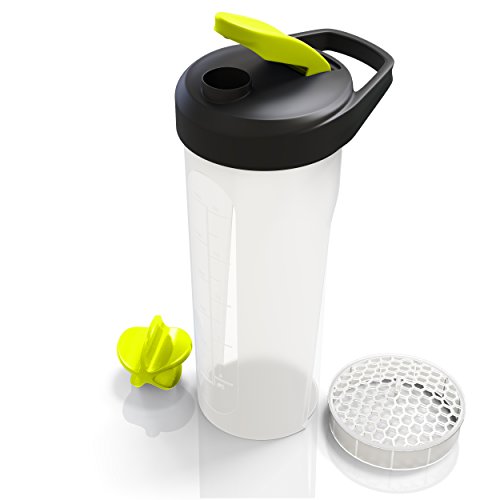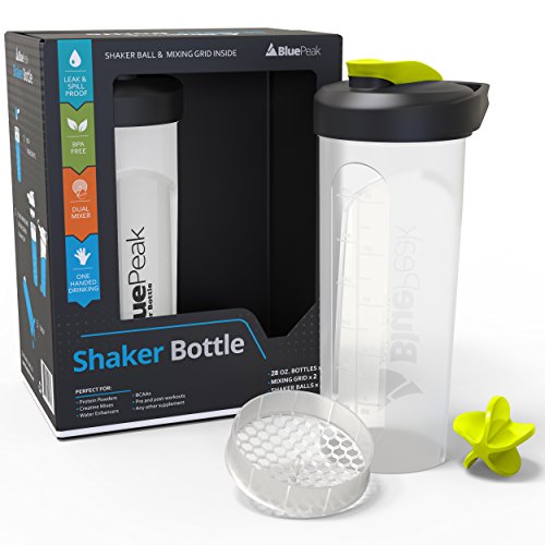 BluePeak Protein Shaker Bottle 28-Ounce, 2-Pack, with Dual Mixing Technology. BPA Free, Shaker Balls & Mixing Grids Included (Yellow-Black)