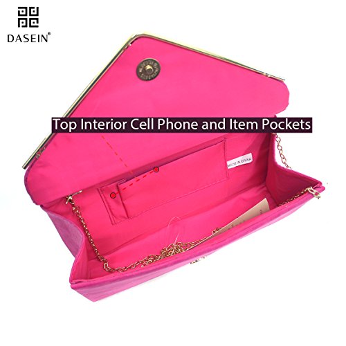 ? This Dasein evening clutch measures 8.5"W x 5"H x 2"D inches. We suggest comparing it to a clutch you already own to make sure it's just the size you want ? Quality guarantee by Dasein: we take quality seriously. You won't get bags that fall apart within weeks or signs of less-than-perfect craftsmanship that are common for handbags in this price range. ? Don't be fooled by its chic, compact look; the highly organized and spacious interior will fit your wallet, iPad, phone, keys, sunglasses, makeup, and more! ? We take extra care to eliminate chemical odors that are commonly found with faux leather bags. If you still detect a smell, unzip the bag and leave it in a ventilated environment for a couple of days. About Dasein