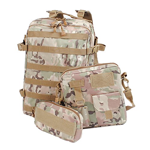 -. Feature : Durable 900D Nylon with 210D coating features water resistant, abrasion resistant, scratching Resistant. Ideal as a 3 day assault pack, bug out bag, survival backpack, army backpack, hiking backpack, trekking backpack, as tackle bag for hunting, fishing... / Ergonomic three-layer padded back and shoulder straps are constructed with breathable Mesh, High density pad and springy foam, ensure soft wearing experience. Shoulder straps also features fully adjustable and removable. / The roomy main compartment offers: One main pocket for general items, One interior mesh pockets to keep small accessories organized, One padded sleeve pocket store your valuable stuff like PC, iPad...Wrap-Around Webbing Platform enable attaching alpenstock, tent, sleeping bag, water bottle easier / Medium compartment for hydration bladder or extra stuff ; Detachable Small pouch for essential accessories and small tools; Detachable shoulder bag keeps frequently-used stuff within easy reach / Overall Dimension: 20x12x8" (47x36x20cm); Main compartment: 20x 12x 5"; Front pocket: 16x 11x 2.5" (40x28x5cm); Shoulder bag: 11 x 9 x 1.8" (21.5x9x3.5cm) ; Accessories pocket: 8 x 4 x 1.5" (20X 10X4cm)