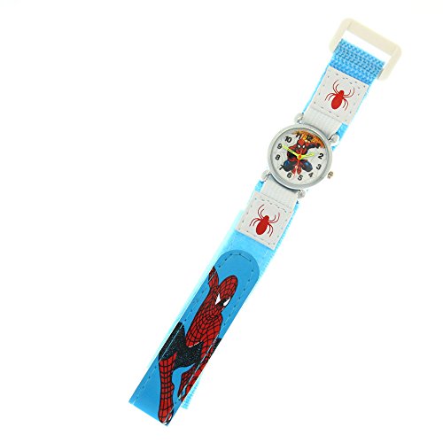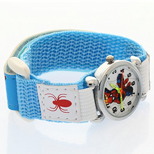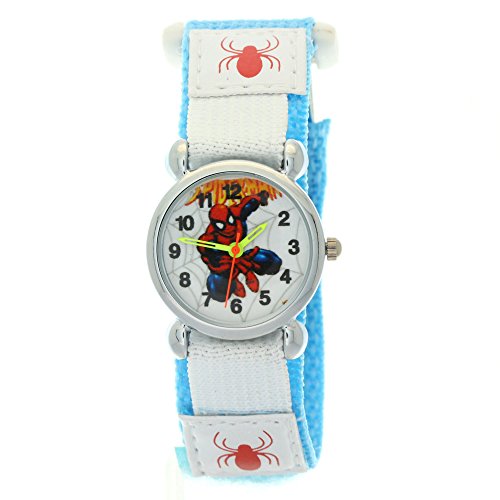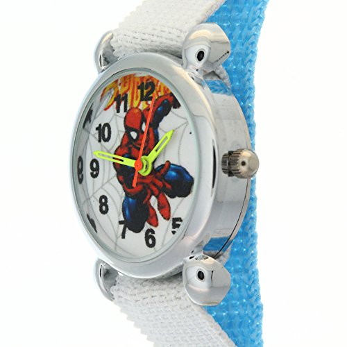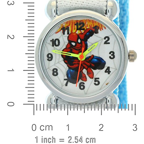 The Marvel Comics Spider-man Kid's stainless steel case velcro buckle time teacher wrist watch. Easy to Read arabic numerals round face designed with labeled ""hour"" and ""minute"" hands. Colorful dial with an image of Spiderman pattern in the center. Excellent for making learning to tell the time easier for children. This watch suitable For Boys and Girls of all ages. This watch is an ideal gift for your kids!