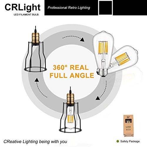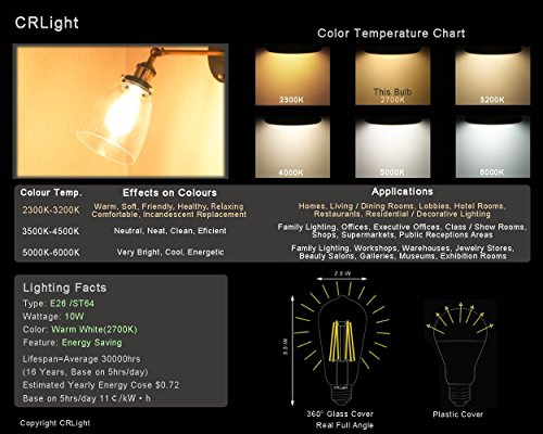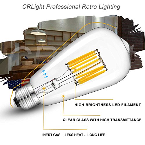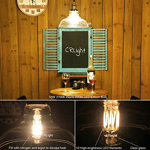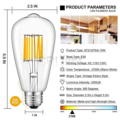 CRLight LED Edison Bulb 10W 2700K Warm White 1000LM, 100W Equivalent E26 Medium Base, ST64 Vintage LED Filament Bulbs, 360 Degrees Beam Angle, Non-dimmable