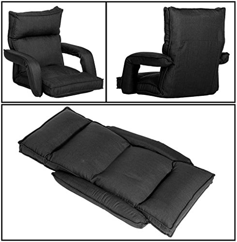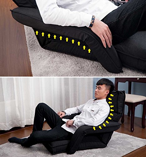 Merax Adjustable Fabric Folding Chaise Lounge Sofa Chair Floor Couch (Black 1)