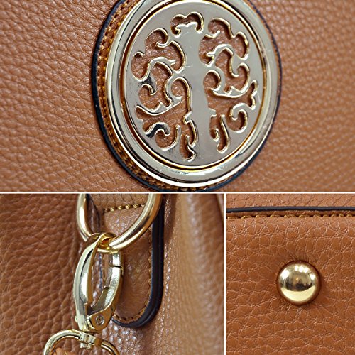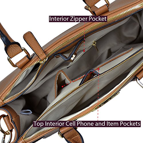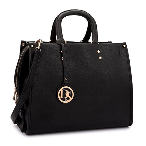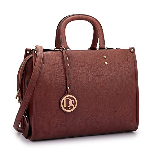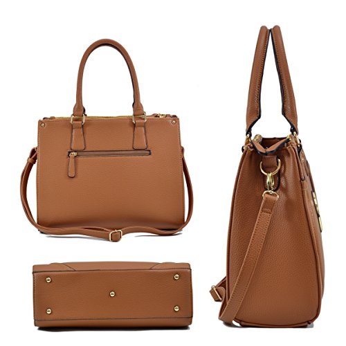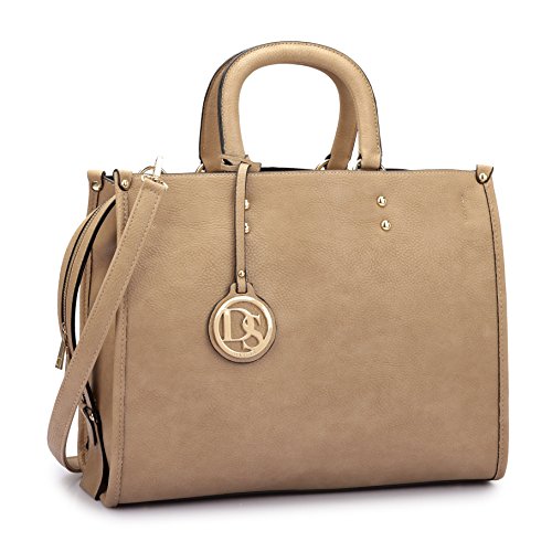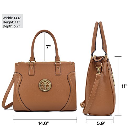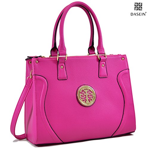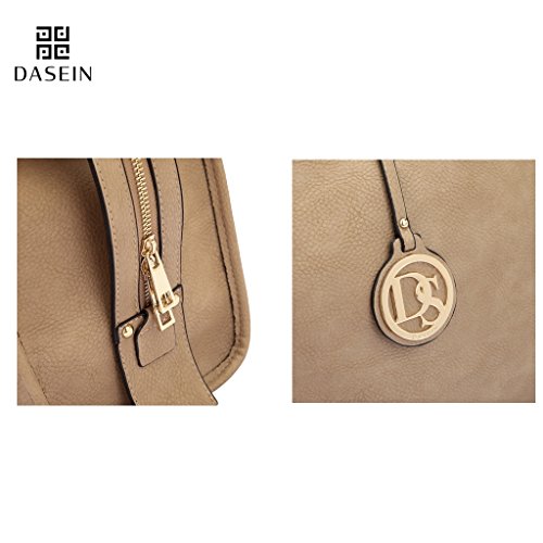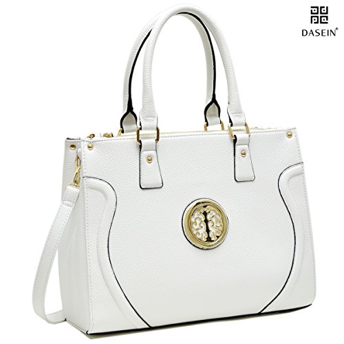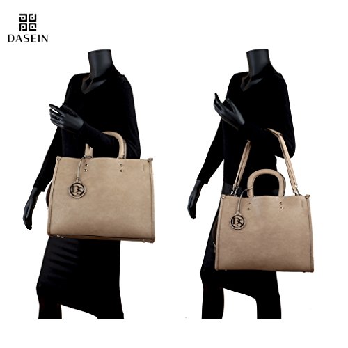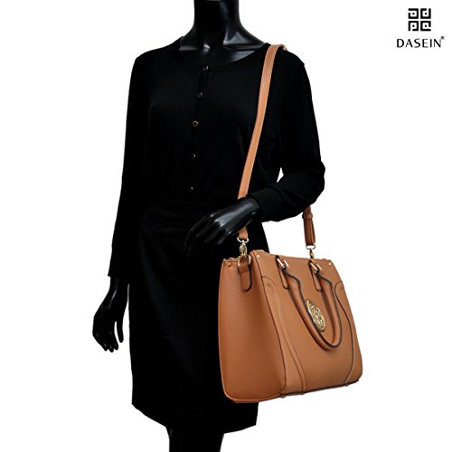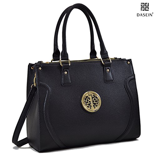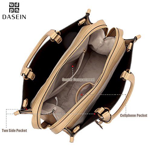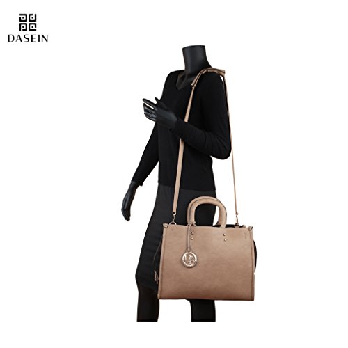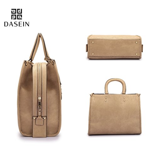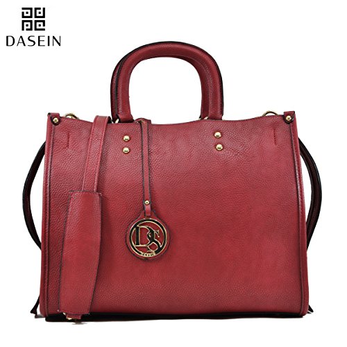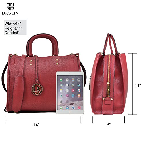 ? This Dasein shoulder bag measures 14"x11"x6" inches inches. We suggest comparing it to a bag you already own to make sure it's just the size you want ? Quality guarantee by Dasein: we take quality seriously. You won't get bags that fall apart within weeks or signs of less-than-perfect craftsmanship that are common for handbags in this price range. ? Don't be fooled by its chic, compact look; the highly organized and spacious interior will fit your wallet, iPad, phone, keys, sunglasses, makeup, and more! ? We take extra care to eliminate chemical odors that are commonly found with faux leather bags. If you still detect a smell, unzip the bag and leave it in a ventilated environment for a couple of days. About Dasein