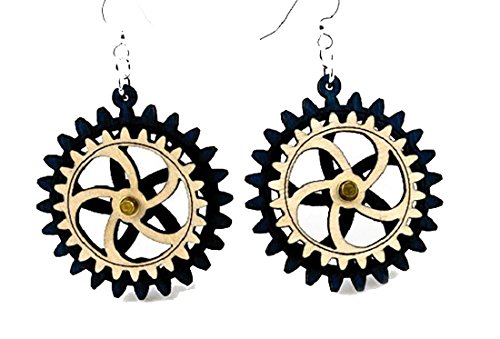 -. Feature : All gears move! Made in the USA using sustainably harvested trees. / As light weight as a feather! Ideal for daily wearing and helps tremendously with earring irritation. / Extremely intricate and expressive. Stained with water based dye. / Ear wires are silver-finished 304L stainless steel, hypoallergenic, and enhanced with a new, smooth and consistent electrophoretic coating that resists tarnishing. / Size 1.65" x 1.5"