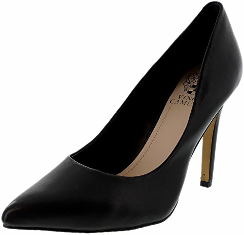 Amazon.com Take a stylish step with this chic pump from Vince Camuto. The VC-Kain features a smooth leather upper and a pointed toe for a dressy touch. Beneath, a manmade sole ensures grip, while the high heel delivers that leggy look you love. 0