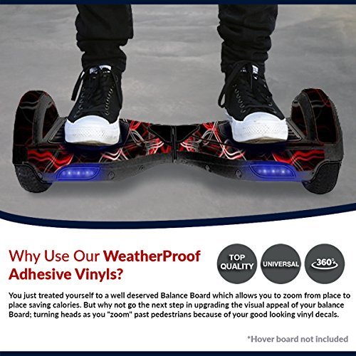 Why Use Our WeatherProof Adhesive Vinyls? You just treated yourself to a well deserved Balance Hoverboards which allows you to zoom from place to place saving calories. But why not go the next step in upgrading the visual appeal of your balance Board; turning heads as you "zoom" past pedestrians because of your good looking vinyl decals.