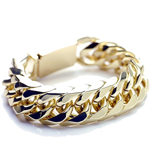 원본상품명: シルバ?ワン(Silver1) ge ダブル喜平 ブレスレット[金色 6面カット 幅22mm] 差?式 キヘイ ステンレス メンズ