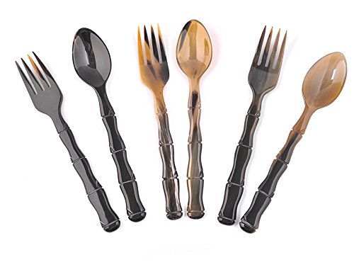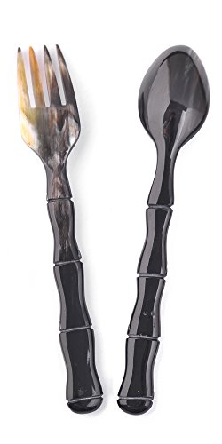 Marycrafts Set of Buffalo Horn Salad servers Set Spoon and Fork Set Length 18.5cm