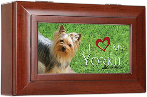 Love My Yorkie Cottage Garden Rich Woodgrain Finish Petite Jewelry Music Box - Plays Song Wonderful World
