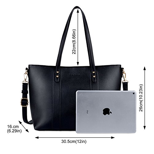 - Black Handbags Size: L*W*H: 30.5*16*26cm(12.01*6.30*10.24in), handle height 22cm(8.66in). Large enough to store A4 magazines, clothes, books, umbrella, flask, camera, iPad, cellphone, wallets, makeups and other necessaries