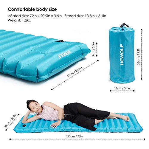 【Incredibly Compact】New high end lighter fabrics for smaller pack size and weight, packed weight: 2.7lb (1200g); size: 4,13" x 9,84"; inflated size: 73,2" x 21.5" x 3.54".