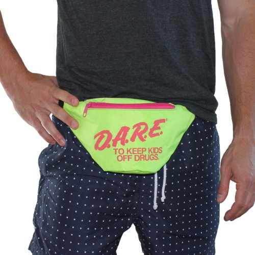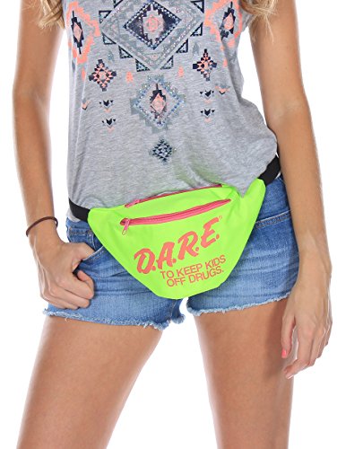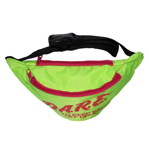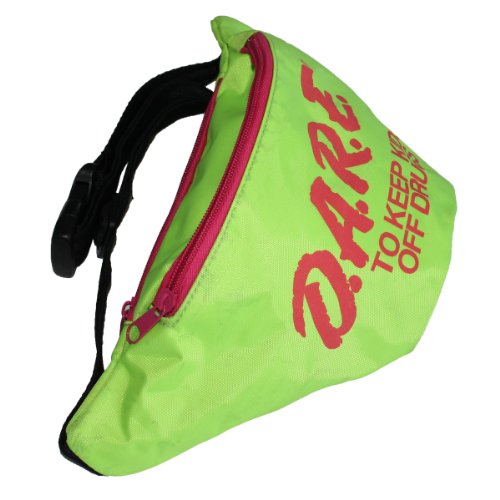 -. Feature : Bright colored fanny pack features neon green and pink colors. / Functional design. / Officially licensed DARE® product. / The adjustable strap fits waist sizes between 28-inches to 40-inches around. / Made from 100% durable nylon.