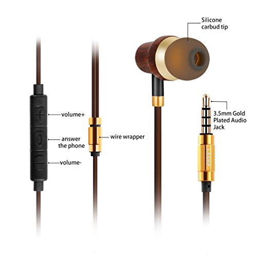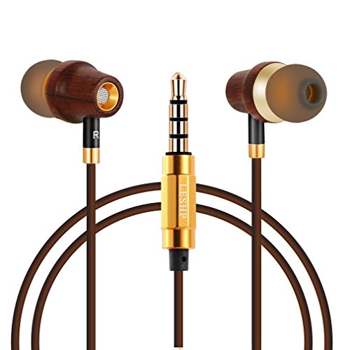 LESHP 이어폰 스테레오 음악 헤드폰 이너 이어형 밀폐형 고음질 우드 이어폰 목제