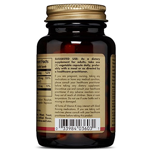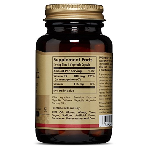 -. Binding : Health and Beauty -. Brand : Solgar -. Feature : Trademarked variety of vitamin K called menaq7 / Great way to get your daily value of this vital nutrient / Easy-to-swallow softgels -. Label : Solgar -. Manufacturer : Solgar -. PackageQuantity : 1 -. ProductGroup : Health and Beauty -. ProductTypeName : HEALTH_PERSONAL_CARE -. Publisher : Solgar -. Studio : Solgar -. Title : Solgar Natural Vitamin K2, 100 MCG