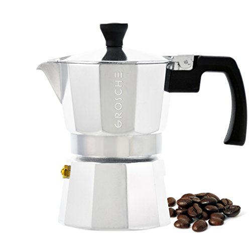 GROSCHE Milano Moka Stovetop Espresso Coffee Maker With Italian Safety Valve, Silver, 6 cup