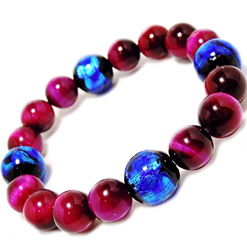 -. Title : Hero's(ヒーローズ) 高品質 琉球 ホタル12mm × ピンクタイガーアイ 10mm ブレスレット 神秘的なコバルトブルー
