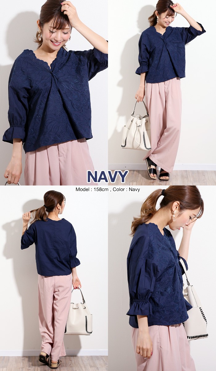 BODYと同色の刺繍なので目立ちすぎず、さりげないディテールが際立つ1枚。