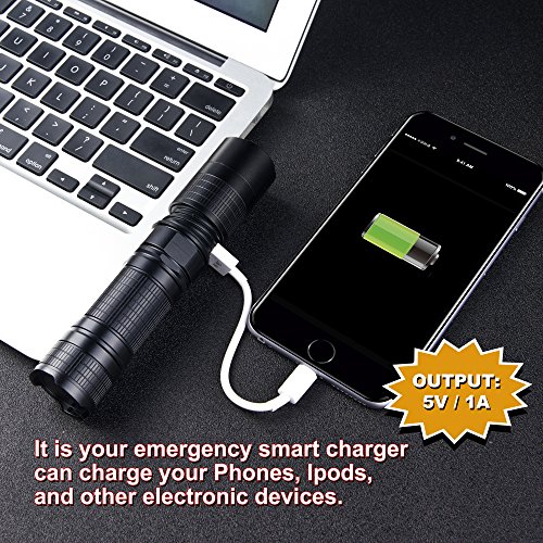 - MICRO-USB BATTERY POWER BANK - The flashlight can be quickly charged by any Micro-USB cable, this means that you can use and charge it pretty much everywhere. The flashlight with a 5000mAh Li-ion battery can be used as a portable charger for any mobile device.