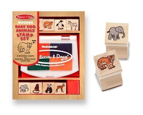 Imagine a landscape full of baby zoo animals. Children love using the 8 detailed stamps and a 4-color stamp pad. It's fun creating countless scenes! This well-crafted set is conveniently contained in a sturdy wooden box for organizing and storage. It's a tremendous value that children will use over and over again! Washable, safe kid-friendly color.
