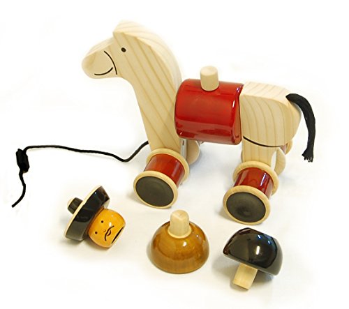 Handmade colorful wooden stacker & pull toy for kids aged 1.5 to 4 years. Made with chemical & toxin free natural soft wood and food grade colors. Enhances balancing & motor skills, encourages creativity. US Toy Safety Standard Compliant.Colourful little toy rodeo : HEE HAW is a shiny & colorful toy horse with 3 piece stackable rider. Hand crafted with great care and love, this colorful toy will spur your child's imagination.