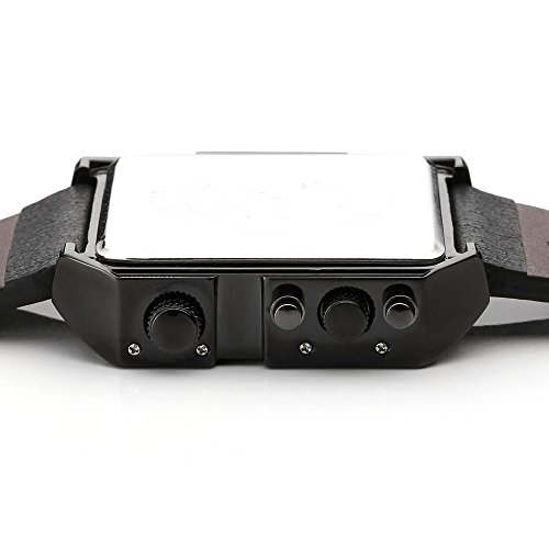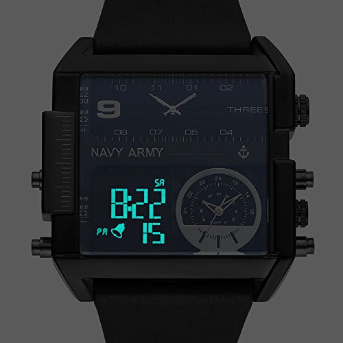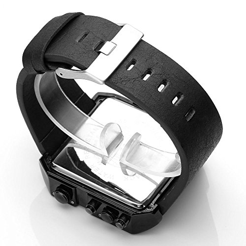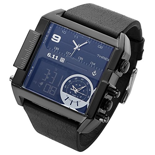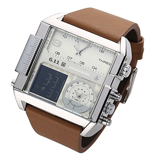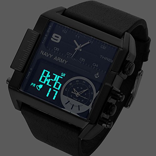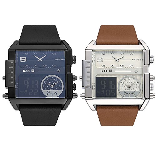 -. Title : Alienwolf Men's Watch Triple Time Zone Digital Sports Square Dial Leather Band Quartz Analog Wrist Watch