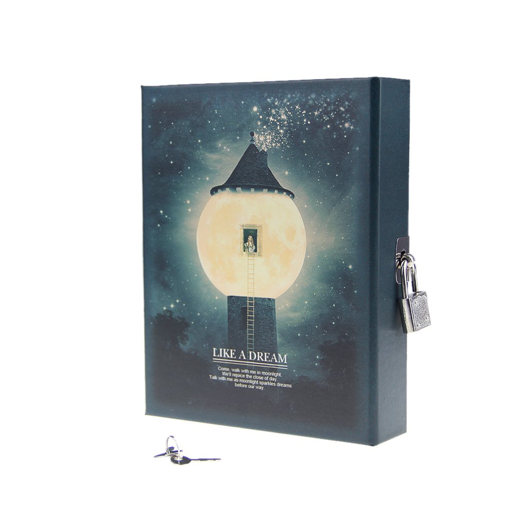 Product Name: Diary Book Keys with Cute Fairy Tales Cover Cover Secret Diary Fashionable Diary Notebook Fashionable Design Design Note Pad with Protective Cover Small Size Stationery with Extra Shiori 4 Types Random Shipping