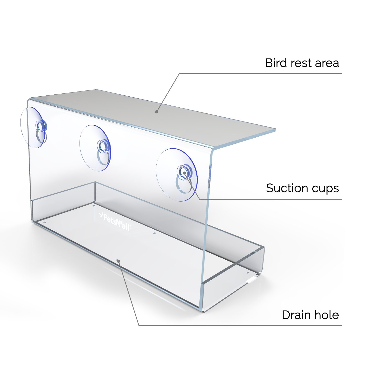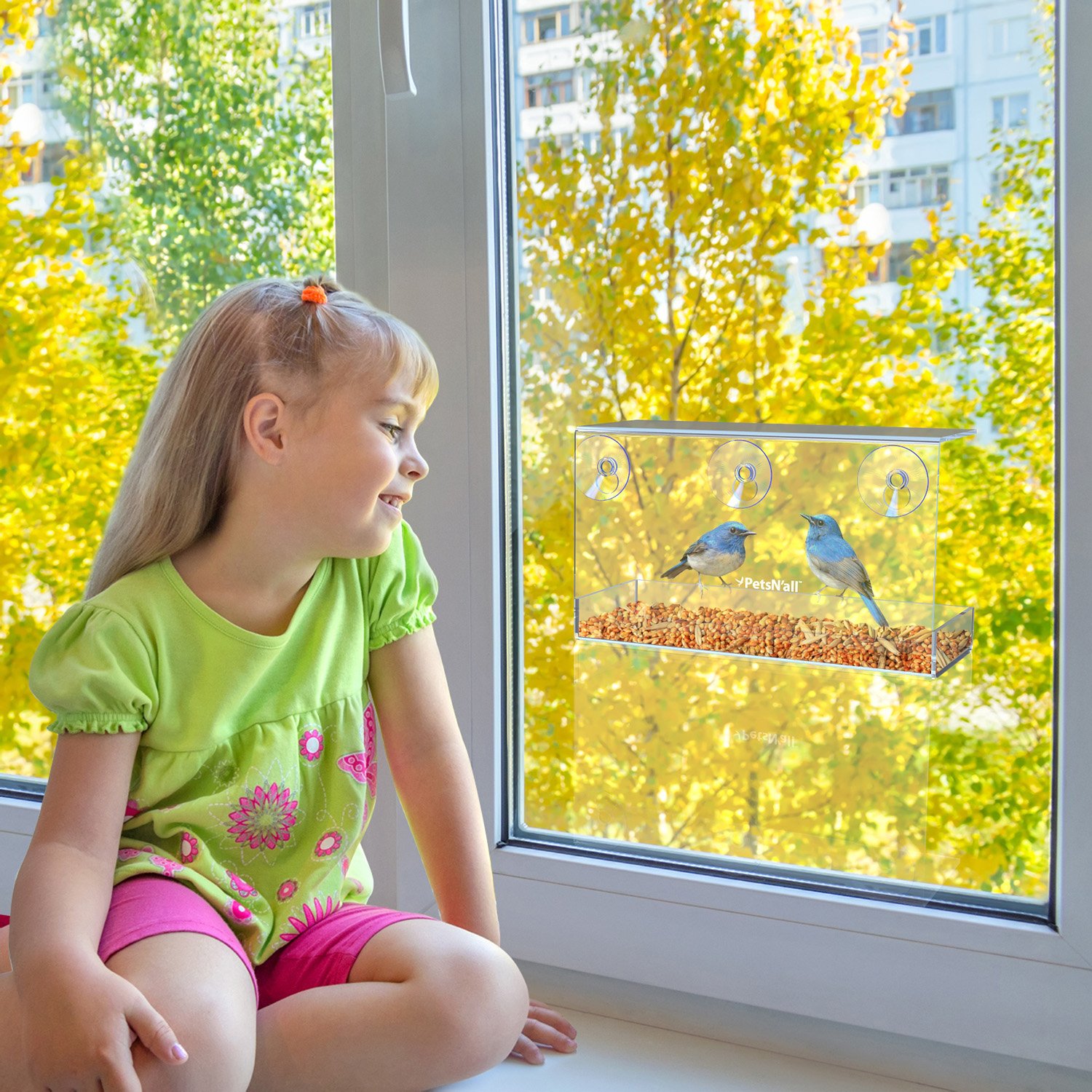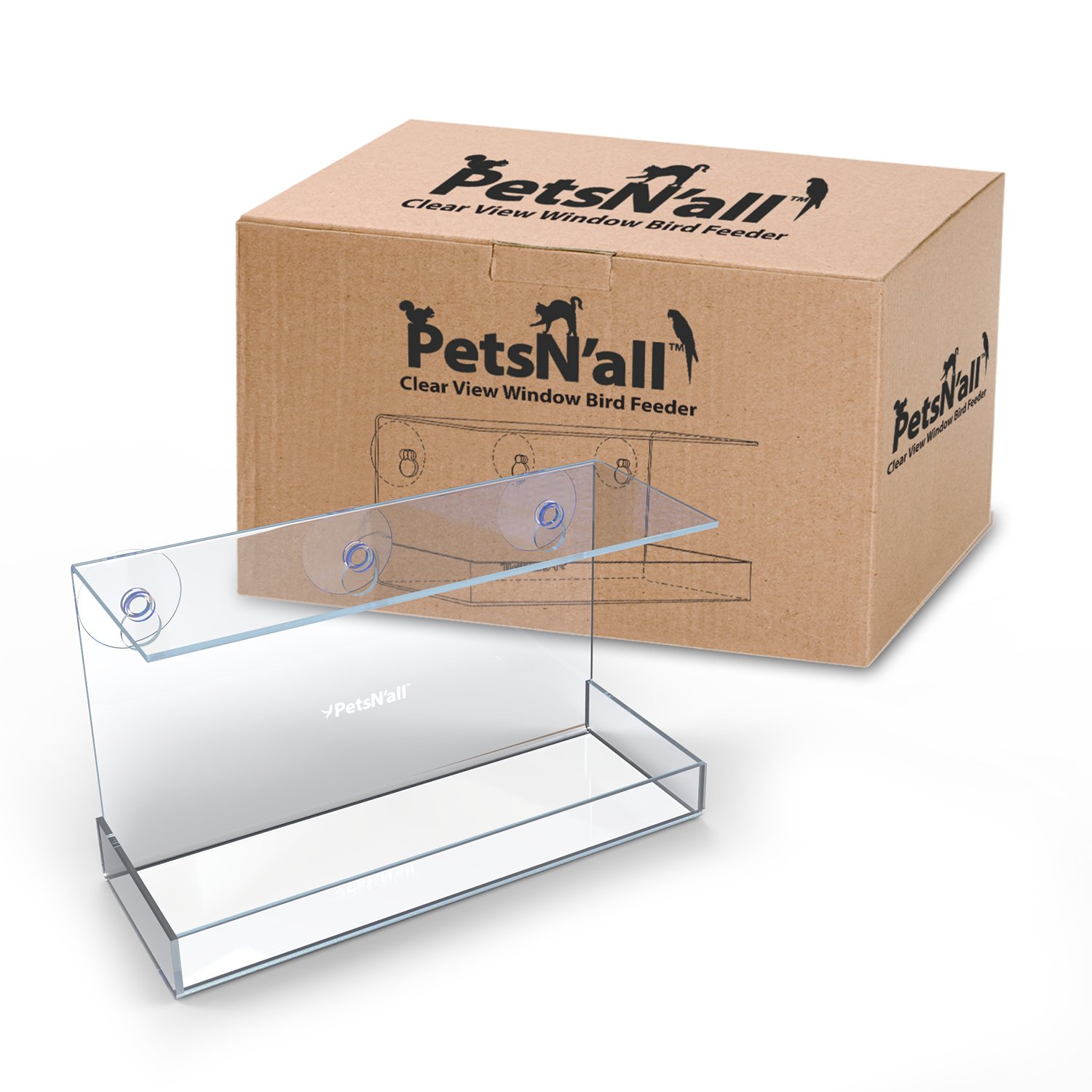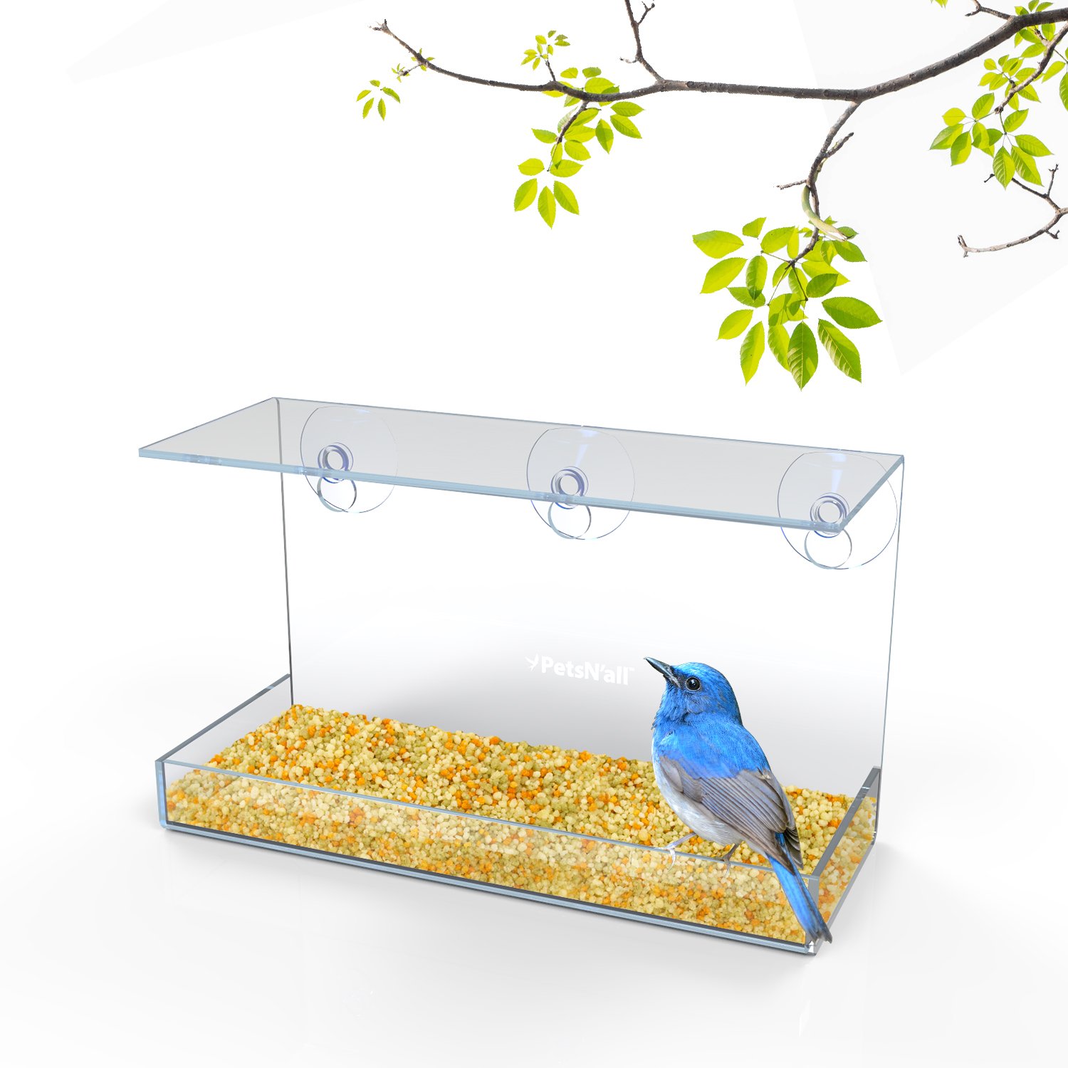 PetsN all Clear Window Family Diner Four-Bird Capacity Small Bird Feeder