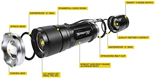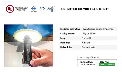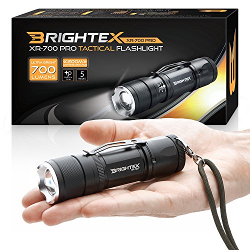 BRIGHTEX XR-700 Pro REAL UL Lab Tested 700 Lumens Super Bright Small Tactical Flashlight XM-L2 U2 LED, Rubast, Water Resistant, 5 Modes Inc Strobe & SOS, 2000 x Zoom & Belt Clip!