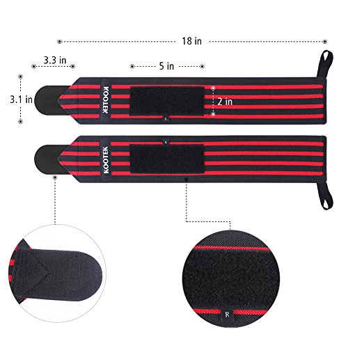 Kootek Wrist Wraps, 2 Pack 18" Wrist Straps Brace with Thumb-Loops Adjustable Strenghen Support Bands for Weight Training, Powerlifting, Bodybuilding, Weight Lifting and Crossfit