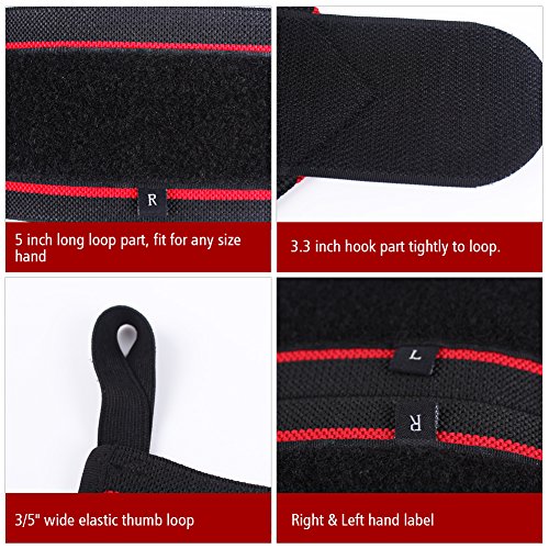 - Elastic thumb loop is made of good quality stiff elastic band, about 3/5" wide, to prevent the wrist wraps move. Right & Left hand label to easy distinguish and put on