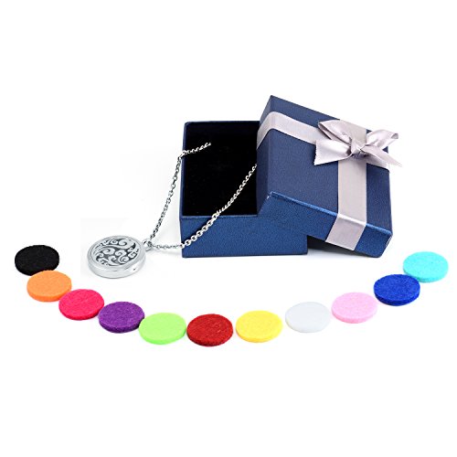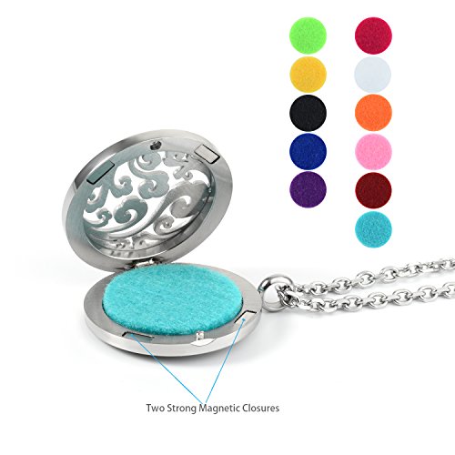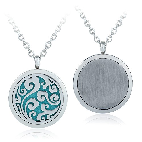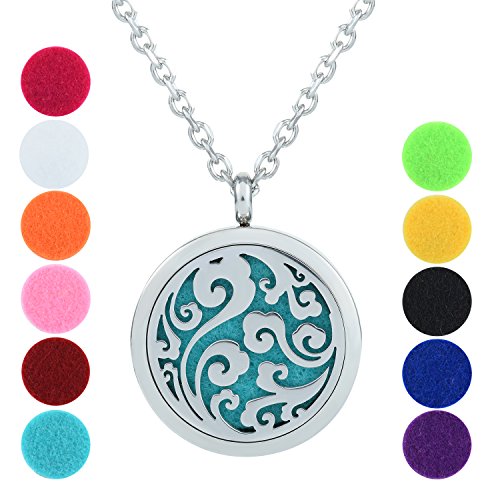 Essential Oil Diffuser Necklace, GerTong Hypo-Allergenic Premium 316L Stainless Steel Aromatherapy Diffuser Locket Pendant Set with 11 Color Refill Pads (Cloud)