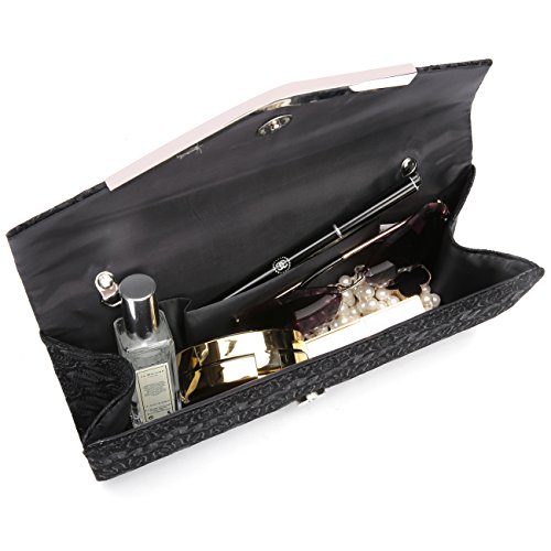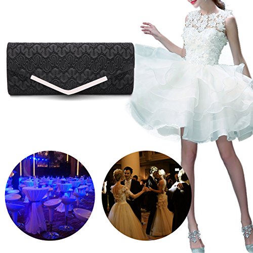 -. Feature : DESIGN: Satin and lace clutch,Keep simple to strip away the flash in your life,A women's fashion handbag collection. / Dimensions:11.5 x 5 x 2 inches(L*W*H). / CAPACITY:This lace clutch bag enough space for your essentials,such as smartphone, keys, money,makeup and toiletries. / CARRYING OPTIONS:You can hold this evening bag in your hand or you can also use it as a shoulder bag with the chains in some events. / OCCASIONS: An eye catcher to gain praises from your friends and lover.Perfect for parties, weddings, date nights, or nights out on the town. Suitable for party, family reunion, prom, banquet and cocktail party and so on.
