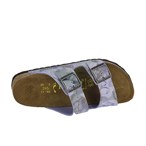 Studio : Papillio Publisher : Papillio Binding : Apparel Product Description Balance your daily ventures with the Birkenstock Arizona Birko-FlorTM sandal. The original Birkenstock design, this casual sandal features a Birko-FlorTM upper with two adjustable straps for a snug fit. An anatomical, suede-covered footbed features layers of cork and latex to mold to the shape of the foot with wear; an extra layer of cushioning eliminates break-in time. The punched EVA sole of the Birkenstock Arizona Birko-FlorTM sandal is lightweight, flexible, durable and shock absorbent. 0