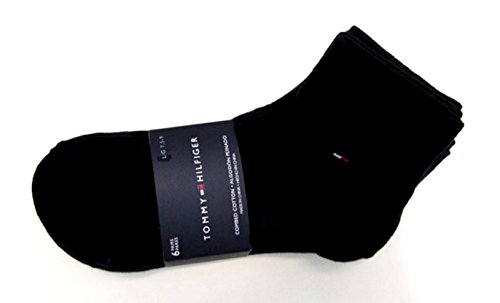 -. Feature : 6 PAIRS Designer Name Brand Casual Athletic Socks / Color: Classic Black with TH Signature Microflag Logos On Ankles / Material: 72% Combed Cotton/26% Polyester/2% Spandex / Size: LARGE (7.5-9)