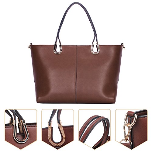 -. Feature : DESIGNER HANDBAGS--Durable vegan leather top-handle designer handbags for women,concise casual large tote bag for work/school,ladies purse crossbody shoulder bags / CLOSURE AND POCKETS--Top zipper closure,1-internal back wall zipper bag,2-internal front top open small bags,1-full length large zipper internal for your inportant things / HANDBAGS DIMENSIONS--10.43Inch(H)X 16.5Inch(L)X 3.9Inch(W),handles height is 7.5Inch/19CM,durable adjustable crossbody straps length is 47Inch/120CM / MATERIAL AND DESIGN--Concise and elegant design,detail reflects the quality like the handle/shoulder strap metal buckles,meticulous stitching on edge etc / ADVANTAGE--Modest size and capacity,Four Colours brown black coffee gray suitable for different seasons and occasions