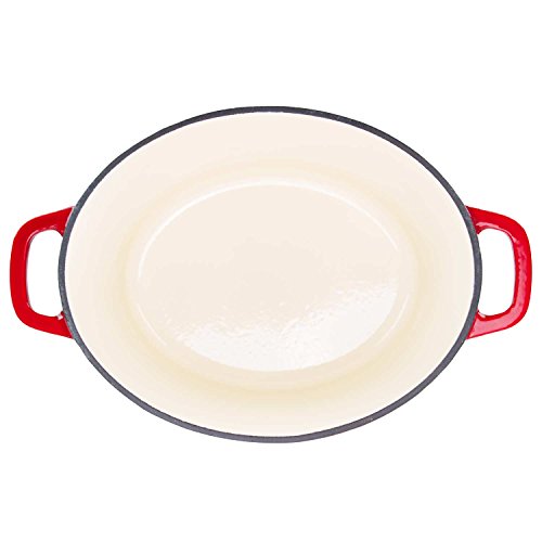 Enamel Oval Dutch Oven Dimensions: 9" wide, 11" long, and 5" deep.