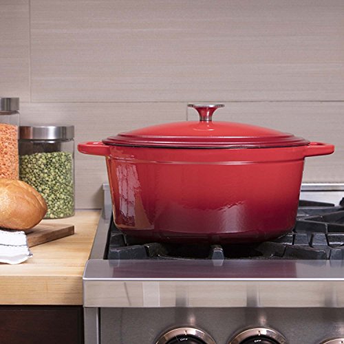 Benefits to using the Zelancio Enameled Cast Iron Dutch Oven: Superior heat distribution and retention ensures an even cooking temperature throughout. Three layers of porcelain enamel are chip resistant. Solid cast iron loop handles for easy transport from stove top to oven. Condensation bumps on the lids interior for self basting. Broiler and oven safe up to 500 degrees F.