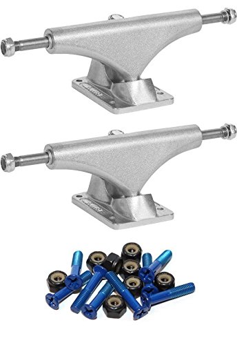 Studio : Bullet Skateboards Publisher : Bullet Skateboards Binding : Misc. Product Description These brand new Silver Bullet Skateboards trucks have a 130mm hanger, and a 7.75" axle. Bullet Skateboards skateboard trucks are known for being some of the most versatile trucks on the market. Bullet Skateboards Silver Skateboard Trucks - 130mm Hanger 7.75" Axle (Set of 2) guarantees a smooth ride. NOTE: Sold as a set of two (2) trucks. Includes: One (1) set of two (2) Silver Bullet Skateboards Silver Skateboard Trucks - 130mm Hanger 7.75" Axle (Set of 2) plus Warehouse Skateboards Standard Phillips Head Dark Blue Skateboard Hardware Set - 1" (includes eight (8) bolts and eight (8) matching lock nuts). 0