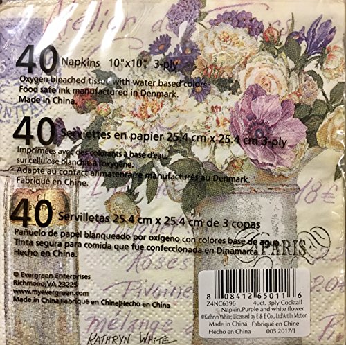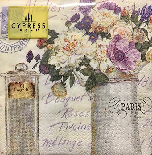 Cypress Home Cocktail Beverage Paper Napkins - Purple & White Flowers with Lavender Oil, 40 ct