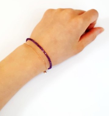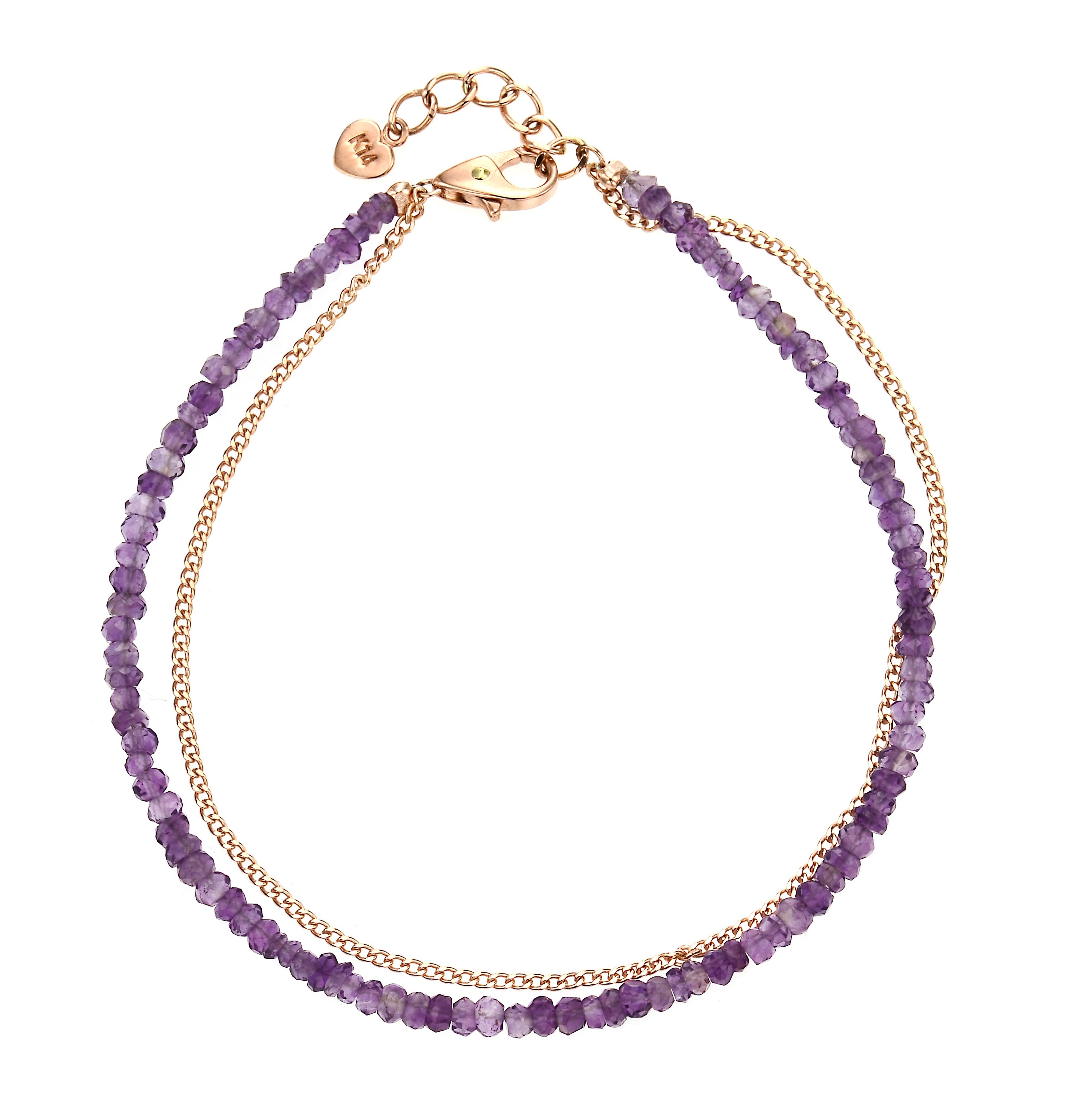 2 월 탄생석인 자수정과 14K 체인을 이용하여 레이어드 형식으로 만든 팔찌입니다.