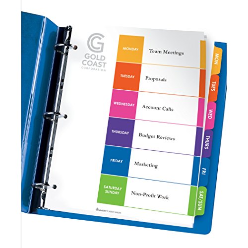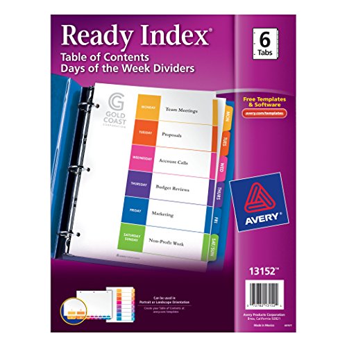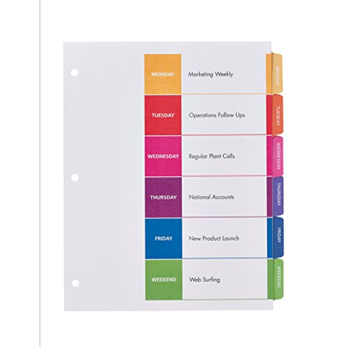 Avery Ready Index Table of Contents Days of the Week Dividers, 6-Tabs per Set, Monday through Weekend (13152)